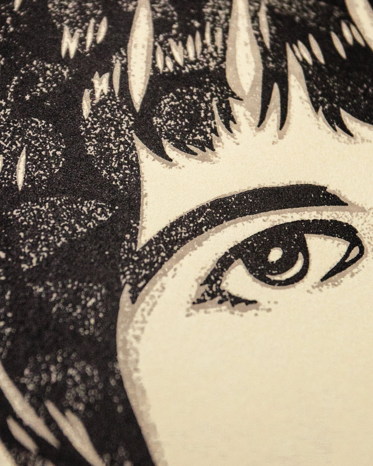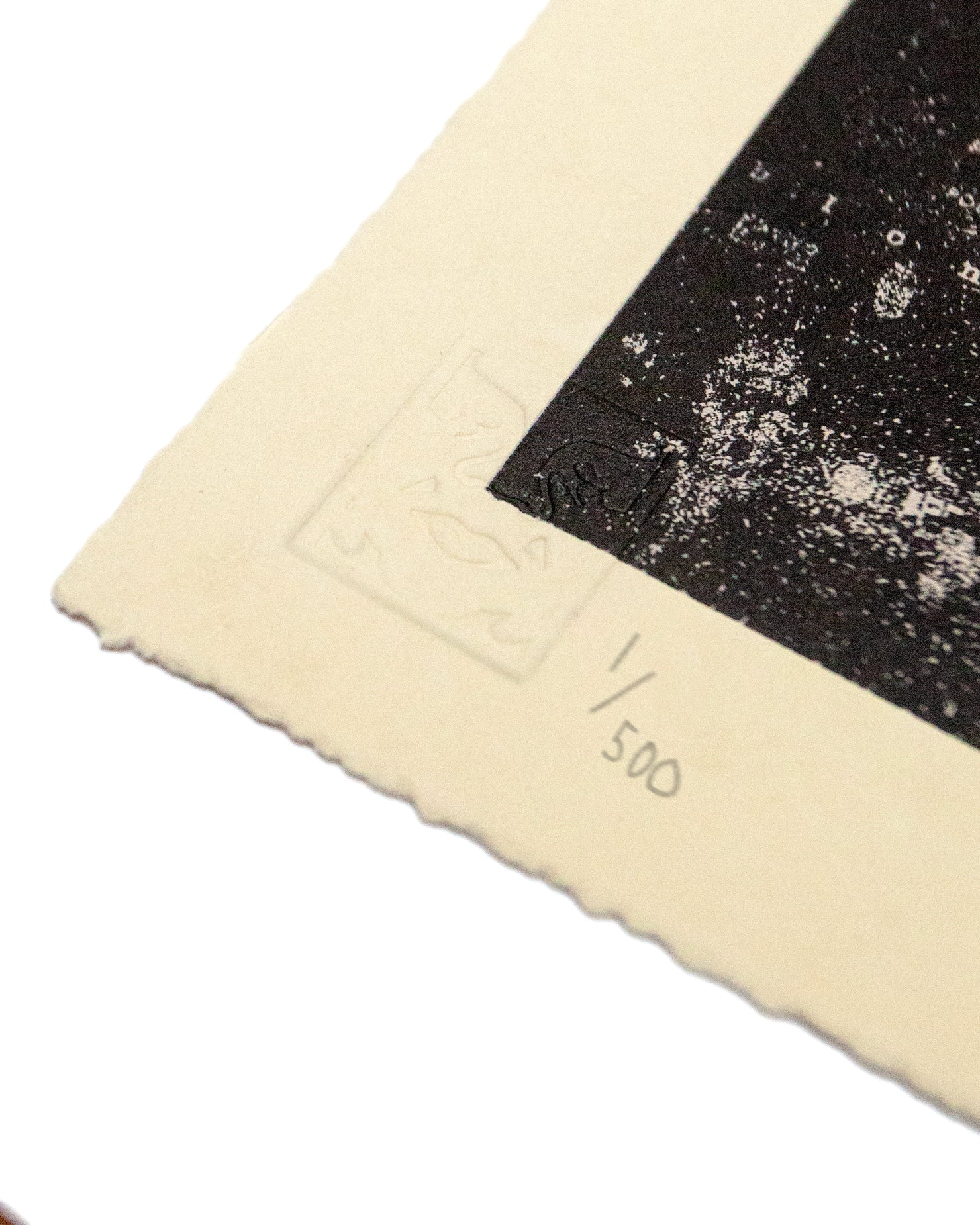 We recommend storing your print flat, using acid-free archival paper or plastic. For long-term care and display, consult a professional framer for the best preservation solutions.